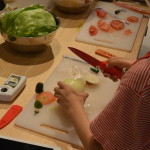 2015年7月24日(金)から3日間にわたって開催されたLife Seed Labo夏期プログラム。このプログラムでは「ハンバーガーであなたもサイエンティスト」をテーマにハンバーガー作りを通してハンバーガーのおいしさのヒミツ・フシギ・ヒケツを科学的に解明します。ただ単に知識を植え付けるのではなく自ら実験して食べることで体験が学びへとつながり勉強がもっと楽しくなるはず!最終日においしいハンバーガーを食べるために試行錯誤した3日間の様子をレポートします。 場所は、サスティナブルなスマートタウンの生活スタイルを提案する湘南T-site内にあるFERMENTです。FERMENTは食とものづくりスタジオで、デジタル工作機器を自由に利用でき、デジタル家電などが揃ったシェアキッチンが組合わさったオープンスペース。そんなスマートシティならではの農と食のプログラムを展開できればと思っています。 7月24日(金)1日目:野菜のカタチとおいしさのヒミツ —————————————————————————————– シャキシャキでみずみずしい野菜にするにはどんな切り方をしたらいいのでしょう。机に並べられたのはレタス、トマト、キュウリ、タマネギ。どれくらいの水分が野菜に含まれているかを測るにはどうしたらいいかをみんなで考えます。もちろん、野菜に突き刺して何秒でピピッと計測する水分量計なんてものはここにはありません!でも、そんなことしなくたって実はいいセンサーをみんな身体の中に持っているのです。そう、それが「口」です。食べて感じたことは主観だけれど、例えば「一番柔らかいを’1’、石のように硬いを’5’として指標を作れば食感や水分の出方を数値に表すことができるのです。 それぞれの野菜はどれくらい水分を含んでいるかを味見で確かめたあと、今度は野菜を切ってみます。野菜には繊維というものがありそれは私たち人間の身体でいう血管です。血液を通して栄養を身体中へ運ぶのと同じように植物も繊維を通して養分や水分を茎や葉へ運ぶのです。では食べるときはどうでしょう。繊維に対して垂直に切るか、水平に切るかで食感と水分に違いはあるのかを考えながらざくっざくっと小気味良く音を響かせながら野菜を切っていきます。   思い切って半分に割ってみた者、そおっと薄い輪切りに挑戦してみた者、それぞれが切った野菜からは断面のカタチのサンプルができあがりました。それぞれの断面を並べてみるとまったくカタチが違います。そもそも、いつも食べている野菜の部分は植物としての「実」、「葉」、「茎」のどれなのか。実は野菜には水分を多く含むことによって種を守る実ものと厳しい環境から大事な水分と栄養を蓄えるために何層にも重なり結球する葉ものとに分けられま す。それぞれの植物としての構造を知ることが実はおいしいシャキシャキ野菜のヒミツだったのです。 7月25日(土)2日目:変化するお酢のフシギ —————————————————————————————– マヨネーズとピクルス。ハンバーガーの味を決める二つの調味料には実はあるフシギな関係があるのです。 初日に引き続き2日目もまずはテイスティングから。出されたのはレモン。ほんのちょっと齧っただけで「酸っぱ〜い!!」そう、酸っぱいということは酸が関係しているのです。 そこでほかにも酸っぱいと感じるお酢やジュース、またハンドソープや台所洗剤といった身の回りにある液体を酸性の度合いを測るph試験紙で測定してみることにしました。ここで理科の話をすると、物質が水に溶けたものを水溶液と言いその性格はすべて酸性かアルカリ性に別れます。実験の結果では見事に酸性よりのものとアルカリ性よりのものとに別れました。 しかし、変色の具合を肉眼で確認するPH用紙の性質上、同じPH3と測定しても実際には同じ性質ではありません。そこでより正確に測れる酸度計を使ってみると5つのサンプルを酸性〜アルカリ性に並び替えることができました。     では、いよいよ「酢」を使ったピクルスとマヨネーズ作りの開始です。空気中の細菌はタンパク質でできていて酢にはタンパク質を変性させる働きがありるため強力な殺菌作用があるのです。例えば、酢飯は普通のご飯の三倍も長持ちするそうです。この作用を利用して野菜を長期に渡り保存しておけるようにしたのがピクルスです。 酢で保存する仕組みを理解したら、漬け込む野菜をカットします。どうやったら味が染み込みやすいか、見栄えがよくなるかをよく考えて野菜を切っていきます。計量した酢、砂糖、塩を混ぜ、さらにハーブを加えたピクルス液を鍋で一煮立ちさせた後、野菜を詰めた瓶に注ぎます。こんなに色鮮やかなピクルスを作ることが出来ました!   一方、マヨネーズ作りはというと・・・実はここにも酢と油の秘密が隠されています。水と油は混ざらないという説が本当に正しいのか実際に身体を張って検証することに。ペットボトルに入れた水と油を全力で